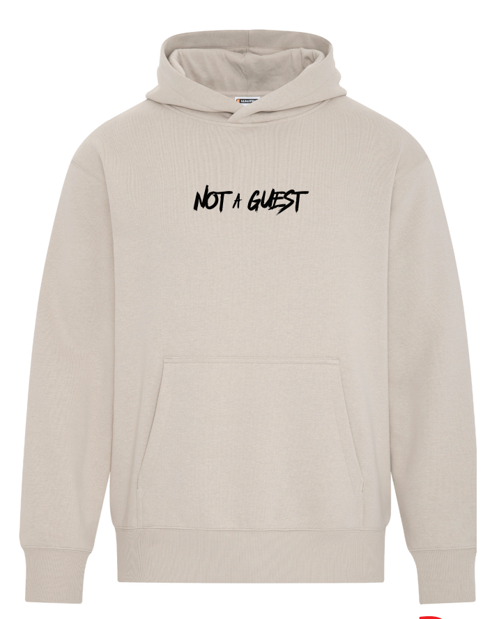 All proceeds from this hoodie support the production of the Not a Guest film.
